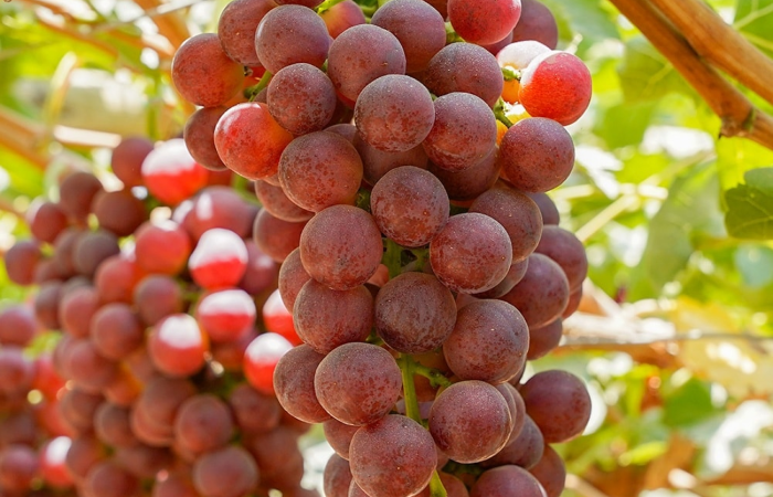 La uva de mesa es una fruta dulce y jugosa, presenta un diámetro de aproximadamente 20 mm y se desarrolla en racimos largos, sueltos, compuestos por bayas redondas u ovaladas. Su variedad se distingue por el color de sus frutos.